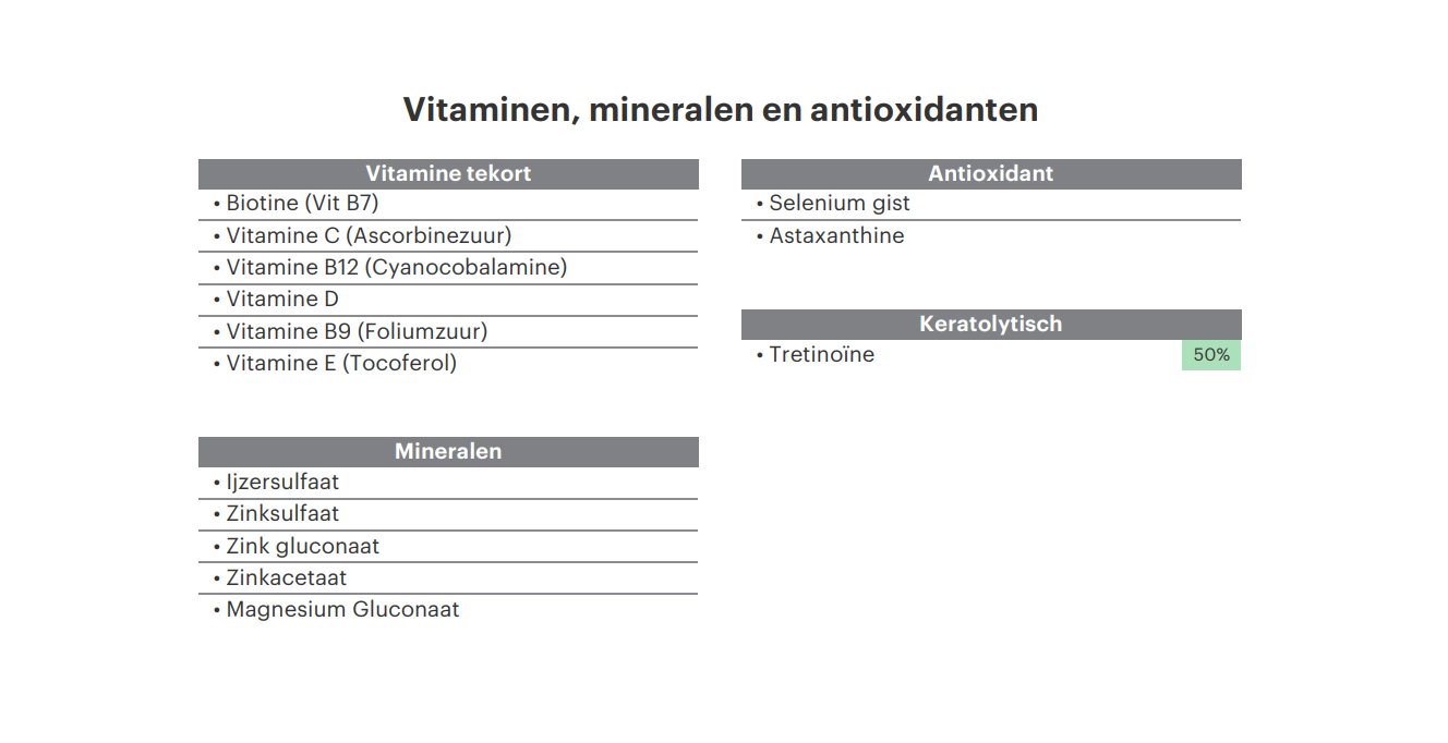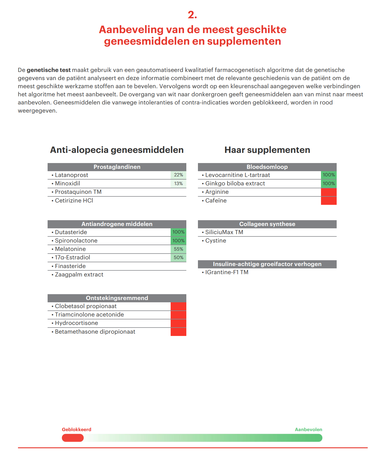 De TrichotestTM van Fagron Genomics biedt een gepersonaliseerd behandelplan voor de meest voorkomende vormen van alopecia op basis van uw eigen genetisch profiel. Er zijn veel verschillende medicijnen (tabletten en lotions) en supplementen (vitamines, mineralen, antioxidanten e.d.) voor haarverlies op de markt, wat de keuze moeilijk kan maken. Daarnaast verschilt de effectiviteit van deze behandelopties per persoon.
